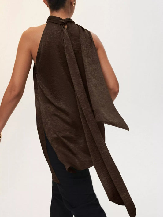 Elegant Halter Neck Asymmetrical Sleeveless Top